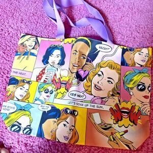 NEW Without tags. Estee Lauder Beach Please Fabric Graphic Beach Comics Tote Bag 16x12