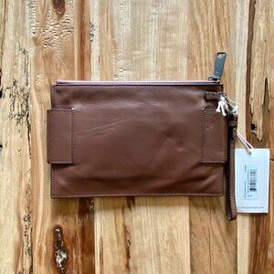 Etienne Aigner Womens Adeline Handle Wristlet Wallet Brown Leather Zipper Small New