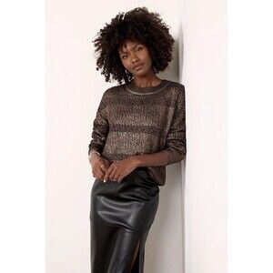 NEW Evereve Womens Size Medium Atlas Pullover Open Knit Copper Sweater $108