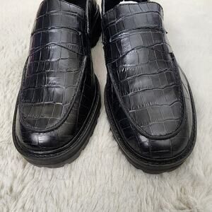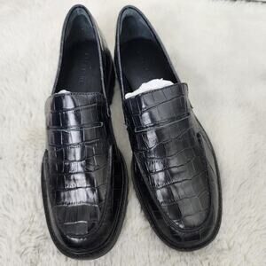 NEW Everlane Black Leather Croc-Embossed The Lug Chunky Loafer