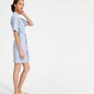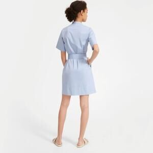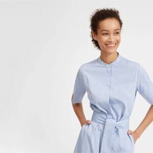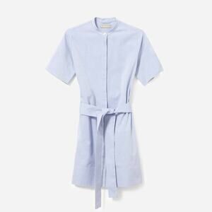 NEW Everlane Blue The Cotton Collarless Belted Short Sleeve Shirt Dress