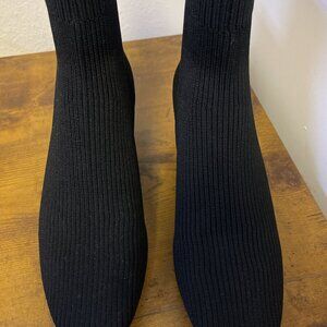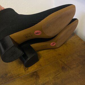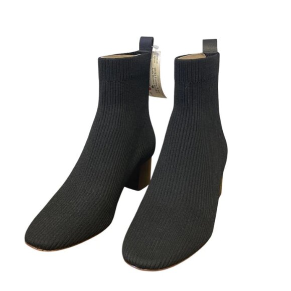 NEW Everlane Chelsea Black Ribbed Knit Ankle Boots Block Heels 9
