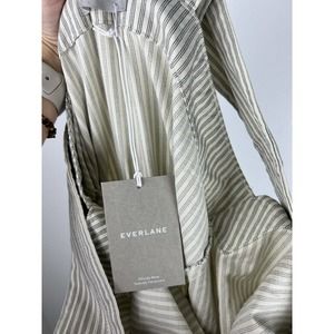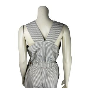 NEW Everlane Stripe Sleeveless Jumpsuit 10 Fatigue Apron Pockets Elastic Waist