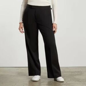 NWT Everlane The ’80s Italian Wool Wide Leg Pants in Black with Side Buckles Size 2