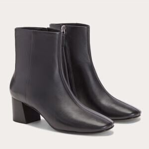 Everlane, The Day Boot, The Day Ankle Boot, ankle boots, booties, leather boots, heeled boots, The Day Sleek Boot, The Day Boot, black, solid black, Nappa leather, Italian leather, genuine leather, soft leather, buttery soft, leather working group, classic, minimalist, sleek, elegant, timeless, versatile, sophisticated, modern, chic, preppy, business casual, office, block heel, stacked heel, walkable heel, mid-heel, low heel, side zipper, pointed toe, square toe, almond tie , cushioned insole, Fall, Winter, Autumn, transitional, everyday wear, work, office, night out.