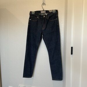 Your go-to skinny jean—with a taller inseam. Our Mid-Rise Skinny has an easy, natural rise and is made of premium Japanese denim with just a touch of stretch for a perfect fit. Fit: this style fits true to size.