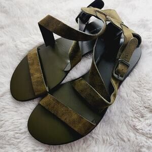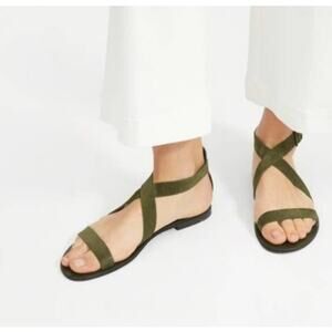 Everlane The Modern Wrap Italian Leather Dark Green Suede Adjustable Buckle Sandal