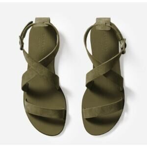 Everlane, Modern Wrap Sandal, Italian Leather, Dark Green Suede, Minimalist Sandals, Buckle Strap, Flat Sandals, Made in Italy, Summer Shoes, Neutral Tones, Chic Footwear, Sustainable Fashion, Vacation Style, Soft Suede