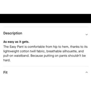 NEW Everlane xs "The Easy Pants" Black Cotton Twill Pull On Relaxed Fit
