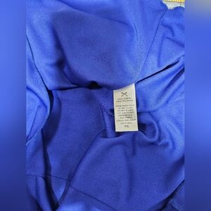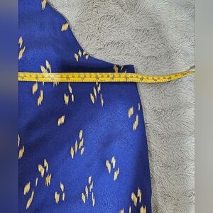New with tags from Stitch Fix Everly brand Andra Dress style in cobalt blue with gold abstract brush strokes. Fully lined dress with tent sheath style and halter neck with a keyhole opening in back. Size small, flat lay measurements: chest 17.5", length from armpit 26".