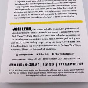 - Description: Growing up in the Bronx, Joél Leon was taught that being soft & vulnerable, could end your life. Shaped by a singular view of Black masculinity espoused by the media, family & friends, & society, he learned instead to care about the gold around his neck & the number of bills in his wallet. He absorbed the “facts” that white was always right & that Black men were either threatening or great for comic relief but never worthy of the opening credits. It wasn’t until years later that Joél understood he didn’t have to be defined by these & other stereotypes. In a collection of wide-ranging essays, he takes readers from his upbringing in the Bronx to his life raising two little girls of his own, unraveling those narratives to arrive at a deeper understanding of who he is as a son, friend, partner & father.