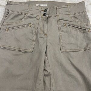 High-quality midweight boot cut chinos by ExOfficio — a brand known for performance travel and outdoor wear. Khaki color with multiple front pockets for functionality and a mid-rise fit. Button fly closure. Women’s size Eight. New without tags — never worn.