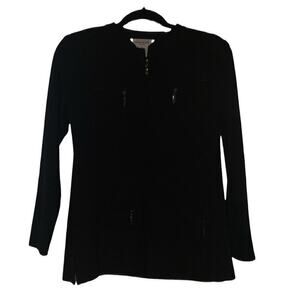 Brand new with tags Exclusively Misook Petite Zip Front Cardigan in black, size SP (Small Petite). Elegant and versatile cardigan featuring a zip-front closure and zipper pocket details for a sleek, modern finish.
