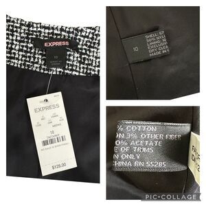 NEW Express $128 White Black Tweed Jacket Blazer Cropped 3/4 Sleeve Women’s 10