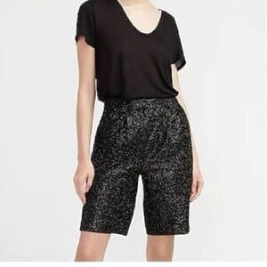 NEW Express Black Sequin High Rise Bermuda Dressy Shorts
