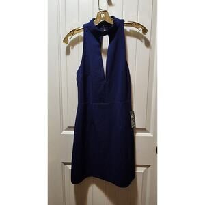 NEW Express Blue Mock Neck Sleeveless Keyhole Sexy Sheath Dress Lace Back Size 6