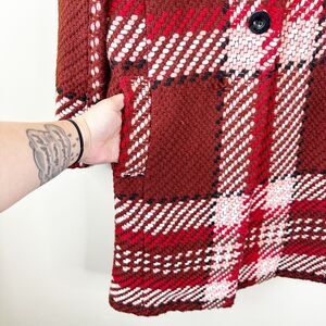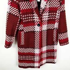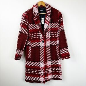 NEW Express Car Coat Womens M Woven Red Pink Plaid One Button