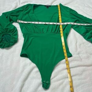 NEW Express Deep V Neck 3/4 Balloon Sleeve Bodysuit Extra Small Solid Green
