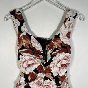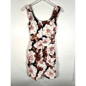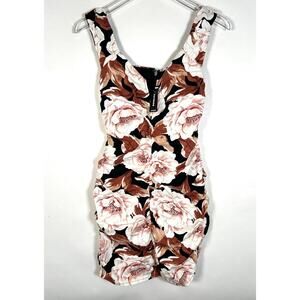 NEW! Express Women's Floral Print Linen-Blend V-Bar Ruched Mini Dress XS Chic