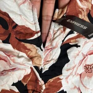 NEW! Express Floral Print Linen-Blend V-Bar Ruched Mini Dress XS Chic $98