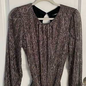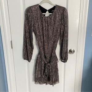 Express Metallic Long Sleeve Tie Waist Tiered Ruffle Mini Dress Size Large