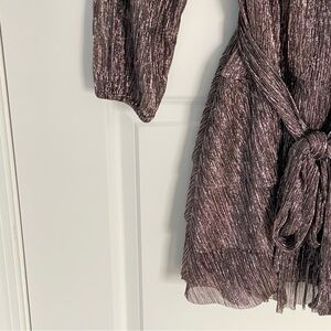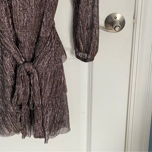 NEW Express Metallic Long Sleeve Tie Waist Tiered Ruffle Mini Dress 35277