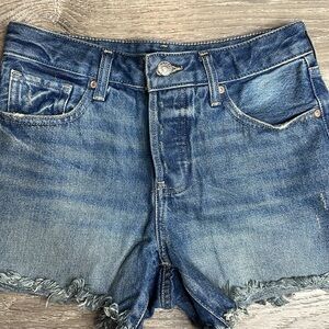 NEW Express Mid-Rise Covered Button Fly Boyfriend Jean Shorts Raw Hem Size 0