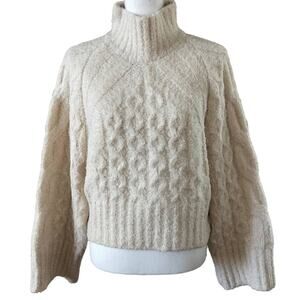 New with tags Express chunky cropped sweater. Boxy Fit. Full sleeves. Turtleneck. Fuzzy feel. Cream. Size XS.