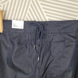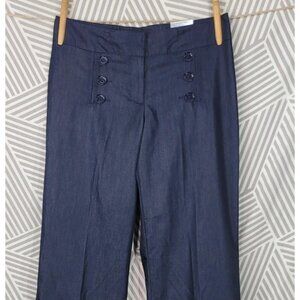 NEW Express Stylist Size 4 Denim Dress Pants Trouser Wide Leg Lace Up Back Blue