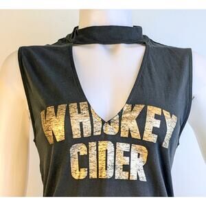 NEW Express Whiskey Cider Cutout Tank Tee Charcoal Gray & Gold V-Neck & V-Back