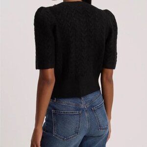 NEW Express Women Pitch Black Embellished Cable Knit Short Sleeve Crop Cardigan