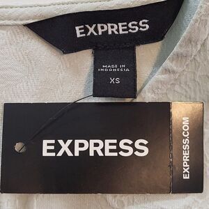 NEW Express X-Small Green Blouse Pullover Puff Sleeves Shoulder Ruffle Peplum