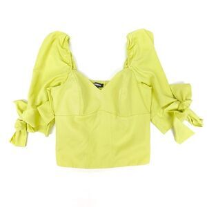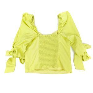 NEW Express y2k Cottagecore Puff Sleeve Corset Smocked Crop Top XS Neon Green