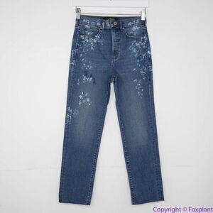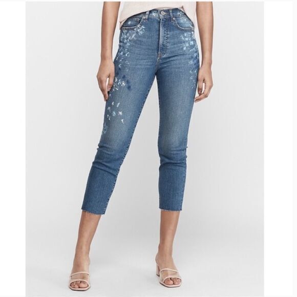 NEW Express Super High Waisted Paint Splatter Raw Hem Jeans legging, size 2 short