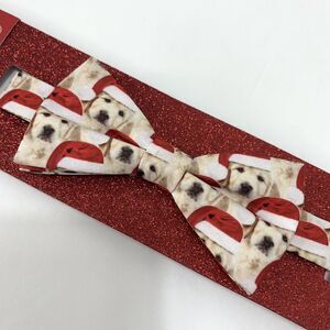NEW FABRIC BOW TIE W/Adjustable Strap CHRISTMAS Dog Puppy Pattern