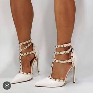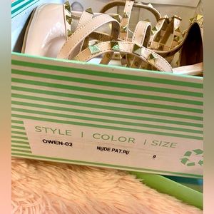 NEW FAHRENHEIT STUDDED STRAPPY PUMPS , NUDE Sz 8-8.5