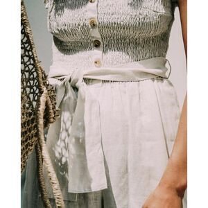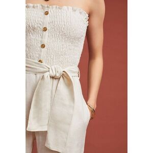 NEW FAITHFULL THE BRAND Sz 4 S LAIS SMOCKED BELTED LINEN STRAPLESS JUMPSUIT BONE
