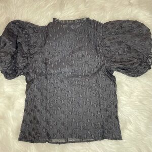 NEW FALL TRENDY BLACK KNIT JACQUARD DOT STATEMENT TOP PUFF SLEEVES