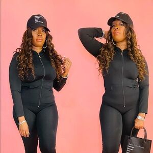NEW FALL TRENDY BLACK TWO PIECE ZIP HOODIE LEGGINGS SET