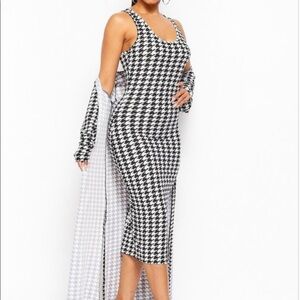 NEW FALL TRENDY HOUNDSTOOTH TWO PIECE TANK TOP MIDI DRESS LONG CARDIGAN SET