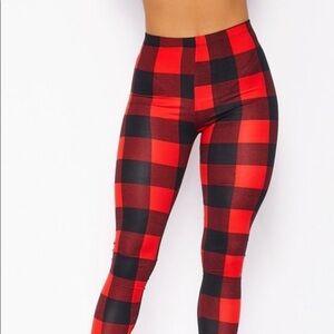 NEW FALL TRENDY RED BLACK PLAID FLANNEL THICK LEGGINGS