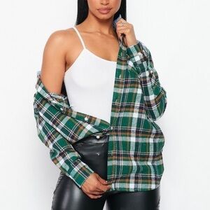 NEW FALL UNISEX TRENDY GREEN MULTI PLAID FLANNEL LONG SLEEVE BUTTON UP SHIRT
