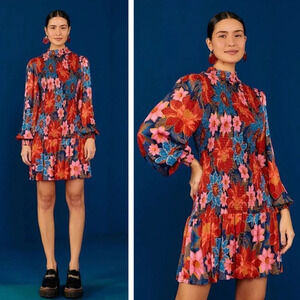 Bold florals for Fall? So groundbreaking with the Navy Garden Lenzing™ Ecovero™ Viscose Midi Dress! It features a cozy-yet-chic fit with ties, long sleeves, and a fresh length to keep showing some legs and bold FARM Rio Shoes. Your new dress also matches your cool accessories and whatever plans you have in mind, from work meetings to having fun with friends. Slim fit High smocked neck Smocked bodice Long sleeves with smocked cuffs Ref.: sku_301902 Composition