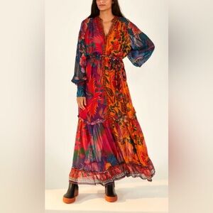 Embrace the vibrant energy of the FARM Rio Mixed Prints Button Down Maxi Dress. This dress features a stunning array of colorful, eye-catching prints that create a playful and eclectic look. The button-down design adds a touch of sophistication, while the flowing maxi length ensures comfort and elegance. Perfect for making a bold statement, this dress is ideal for daytime events, casual outings, or summer gatherings. Step out in style and let the lively patterns speak for themselves.