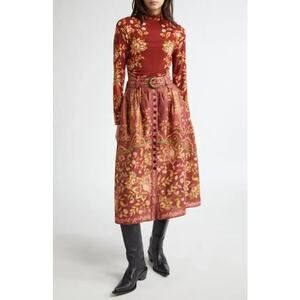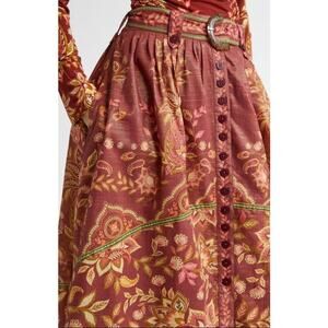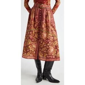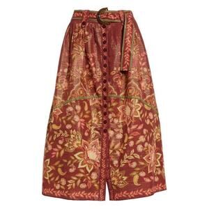 NEW FARM RIO Pineapple Dream Metallic A-Line Skirt Midi Floral Belted Size XS