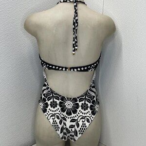 Farm Rio Women’s Floral One-Piece Swimsuit – Black with Flowers – Size S