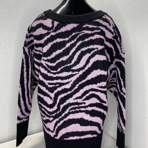 Farm Rio Women’s Zebra Skin Knit V-Neck Sweater Size XXS – Purple/Black Pullover