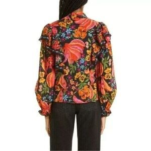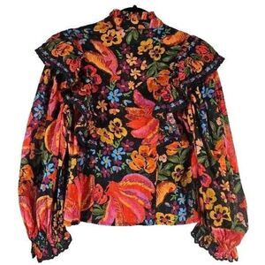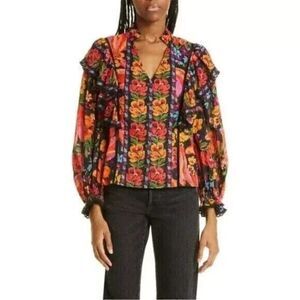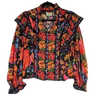 FARM RIO Printed Spring Bananas Red Black Floral Long Sleeve Blouse Size: Small New without tags With signature bold colors and vibrant prints, this ruffled blouse with puff balloon sleeves stands out in a crowd. Long sleeves