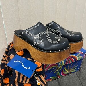 NEW FARM Rio Black Heart Clog Studded Platform Heels