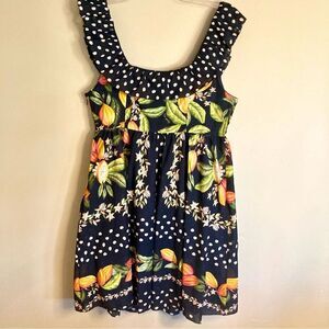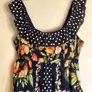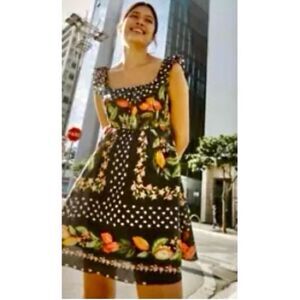 NEW FARM Rio Cocoa Paradise Mini Dress Tropical Polka Dot Ruffle Black Size XL